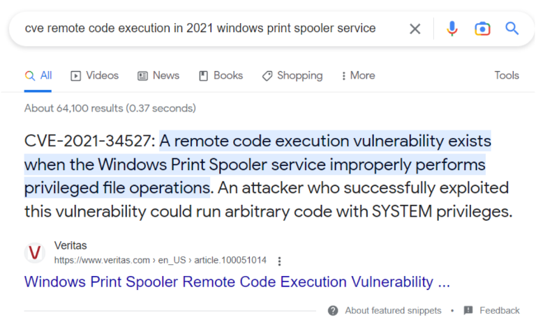 Pada soal ini cukup mudah karena saya hanya perlu mengetahui kode CVE dari vulnerability (RCE) pada Windows Print Spooler Service tahun 2021.
