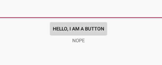 Ini adalah tampilan app tersebut ketika dibuka. Terdapat sebuah tombol yang bisa kita klik. Jika kita tidak menginput apapun atau inputnya random maka akan keluar sebuah kata NOPE.