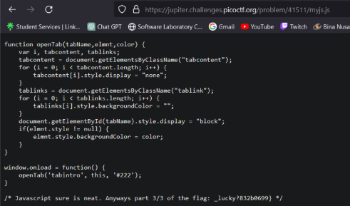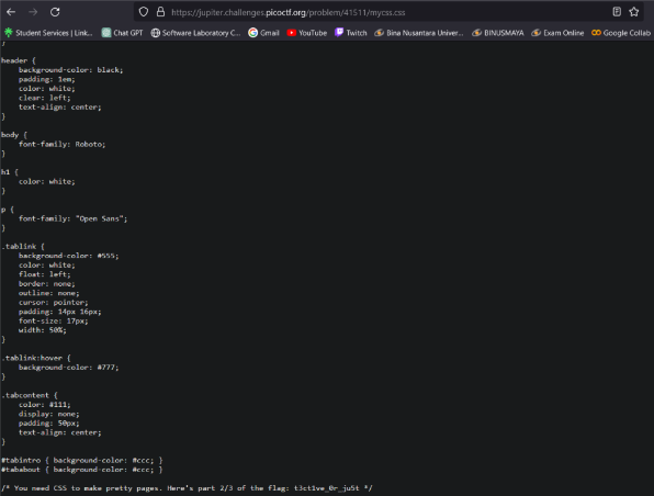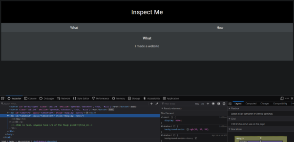 Berikut adalah tampilan websitenya dan setelah saya inspect, saya menemukan part pertama dari flagnya