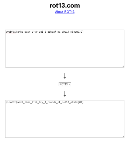Flag: picoCTF{next_time_I'll_try_2_rounds_of_rot13_aFxtzQWR}