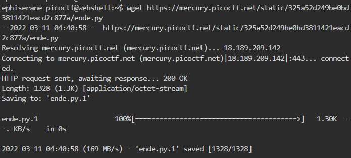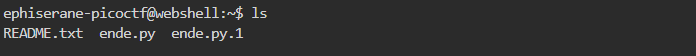 Disini saya melakukan ls command kembali untuk mengoreksi apakah file ende.py sudah benar-benar terdownload.