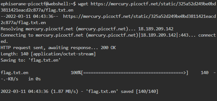 Kemudian, saya melakukan wget command kembali untuk file flag.txt.en.