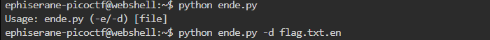 Artinya, dengan file flag.txt.en saya bisa menyelesaikan permasalahan pada file ende.py