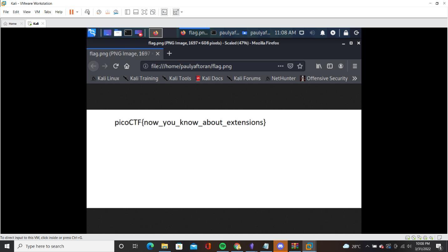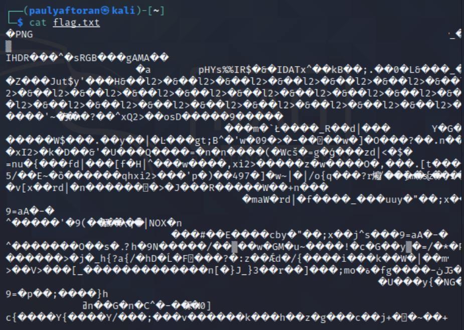 Dan pada header dari struktur filenya terlihat bahwa file ini sebenarnya berekstensi png. Jadi saya coba merubah ekstensinya dari .txt ke .png dengan command "mv".