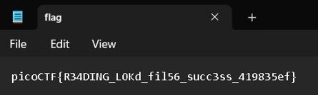 Flag: picoCTF{R34DING_LOKd_fil56_succ3ss_419835ef}