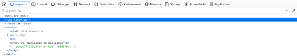 Flag: picoCTF{1n5p3t0r_0f_h7ml_fd5d57bd}