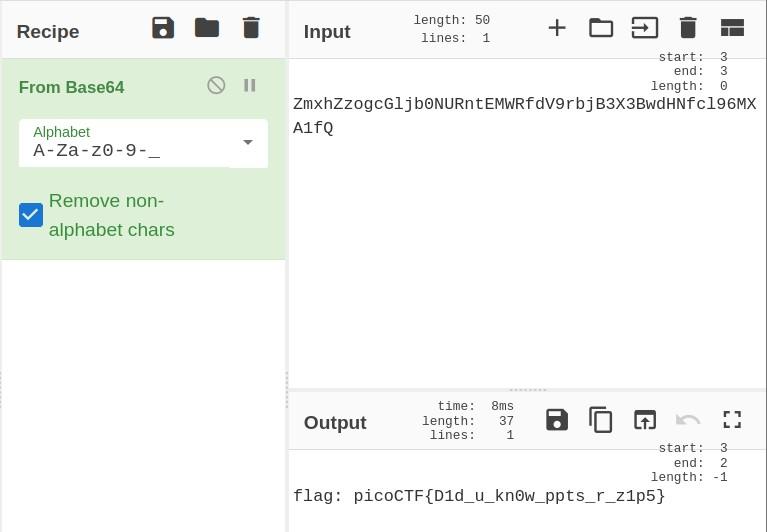 Untuk mengdecode string tersebut saya menggunakan decoder online yang Bernama cyberchef dan flag pun ditemukan.