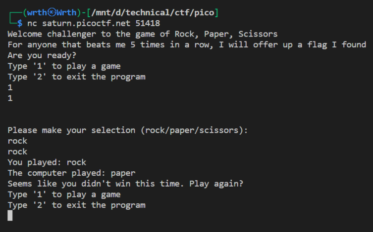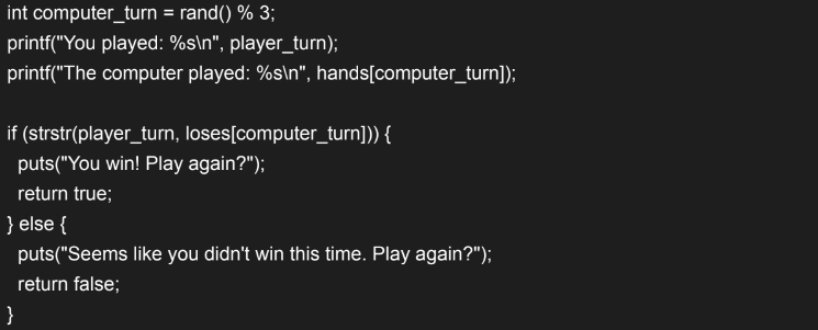 rock, dan akan kalah oleh loses[0] yaitu paper, jadi kalau yang kita mainkan sama dengan