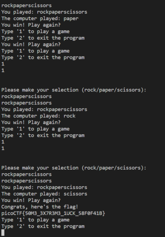 adalah dengan menginput “rockpaperscissors”, dengan begitu apapun pilihan computer, substring