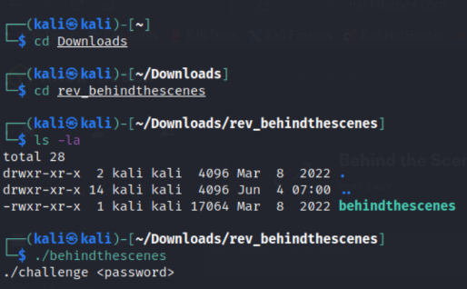 Setelah diextract, saya langsung memasuki direktori dan melihat isinya. Ternyata terdapat 1 file dan ketika diexecute tidak muncul apa-apa selain β./challenge <password>β