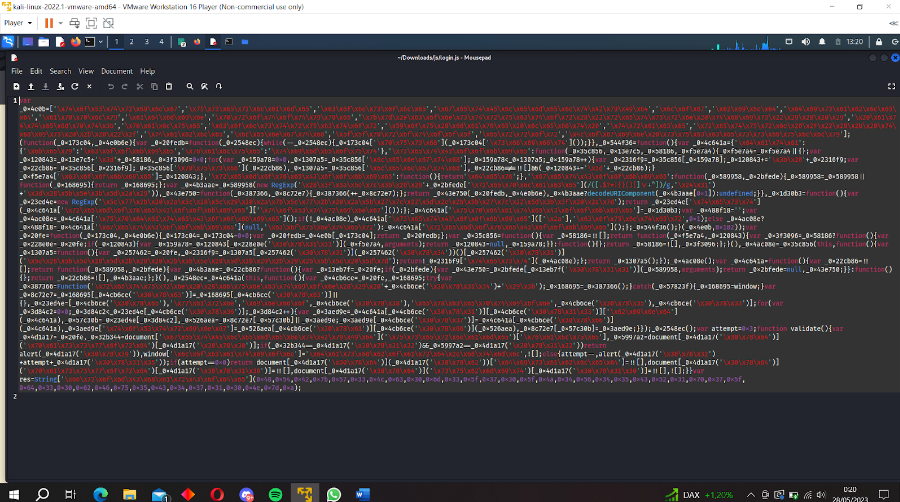 Setelah itu saya mencoba untuk membuka directory js dan ternyata di dalamnya terdapat login.js yang ketika dibuka ternyata terdapat banyak teks di dalamnya.