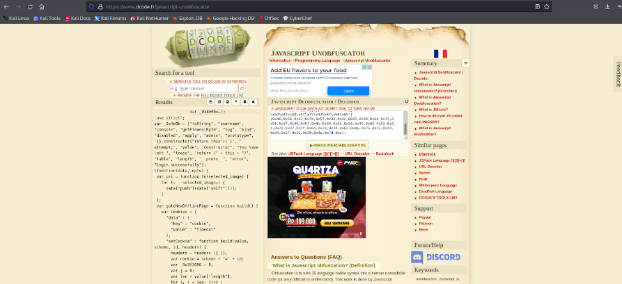 Kemudian saya mencoba untuk menggunakan tools online decoder untuk js dan ketika dimasukkan semua teks tersebut ternyata semua di bagian atas merupakan code.