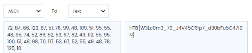Flag: HTB{W3Lc0m3_70_J4V45CR1p7_d30bFu5C4710N}