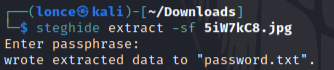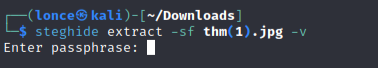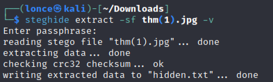 Dan benar di halaman terdapat sesuatu yaitu y2RPJ4QaPF!B, tapi untuk saat ini saya simpen dulu. Setelah melihat lebih dalam lagi saya agak stuck, lalu saya ingat kalo room ini ada steganographynya jadi saya coba steghide image yang tadi.