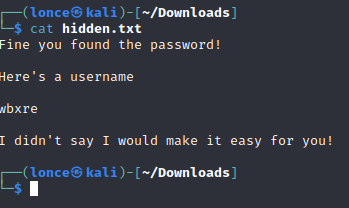 Setelah itu saya cat filenya dan menemukan username yang di chipper? Jadi saya coba decode.