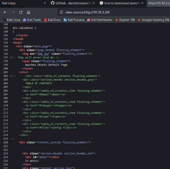 Terdapat 2 port standart terbuka: 22 (ssh) dan 80 (HTTP). Saya cuba buka webnya dan view sourcenya.