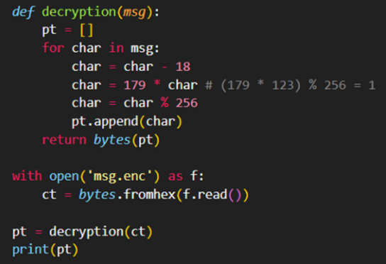 179 * char % 256 merupakan kebalikan dari 123 * char % 256