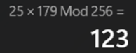Lalu kita kali 25 dengan 179 dan kita modulus