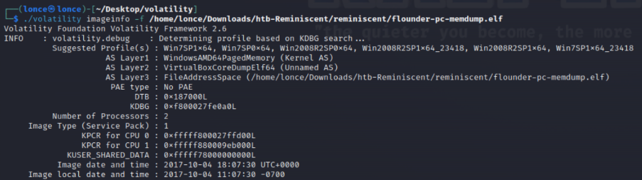 Jika tidak mendapatkan file imageinfo yang berisi informasi file dumpnya dapat menggunakan command berikut: