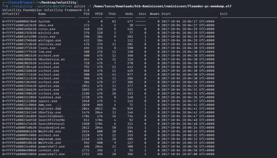 Lalu dengan infomasi yang didapatkan selanjutnya yaitu menganalisa processnya dengan menggunakana command berikut: