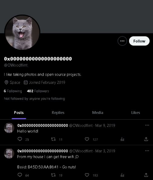 Baru dibuka udah ada yang menarik nih, hal itu adalah BSSID. Tapi itu buat tujuan selanjutnya, task pertamanya itu nanyain apa avatar (profile picture) dari user, yak betul sekali kocheng abu (CAT).