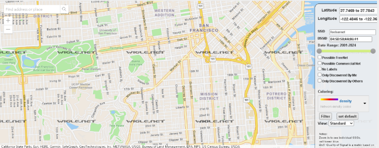 Ga gitu ya guys, pas awalnya memang gini dan kita harus geser-geser sendiri buat nyari lokasi BSSIDnya. Untungnya lokasinya ga terlalu jauh dari si titik awal (San Francisco).