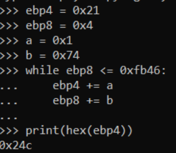 dan ketemu value dari ebp4 nya adalah 0x24c